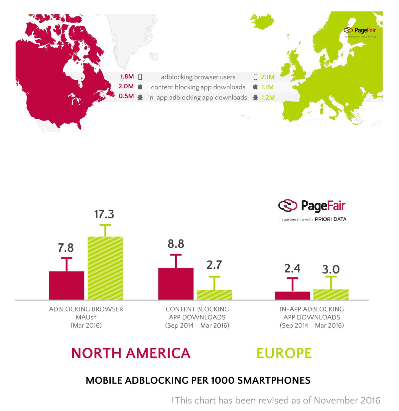 In June 2016 Page Fair analytics came up with information stating that 16% of all smartphones worldwide already had blockers installed. During 2015, people had started to use blockers for mobile devices at an increase of 102%.
