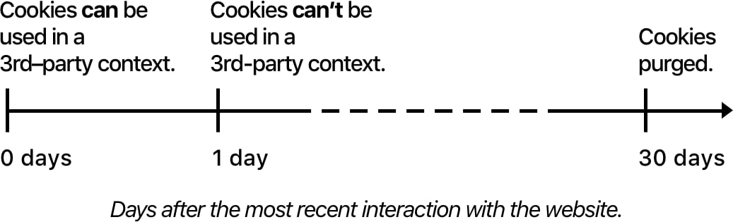 Apple's approach is based on giving information about users only to the sites they interact with and are interested in. So, if site A receives information about a user only as a "third party", through other sites, and the user hasn’t visited site A itself within 30 days, then the cookie files from site A get erased from user’s device and prevented from uploading again.