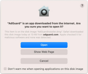 Downloading AdGuard To install AdGuard, click the file indicated by the arrow Select "Open" and click "OK", then wait for the file to be downloaded. In the opened window, drag the AdGuard icon to the "Applications" folder. Thank you for choosing AdGuard! Select "Open" and click "OK", then wait for the file to be downloaded. In the opened window, click "Install". Thank you for choosing AdGuard!