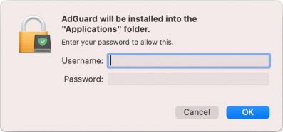 Enter your admin credentials in the dialog box and click OK to allow installing AdGuard for Mac.