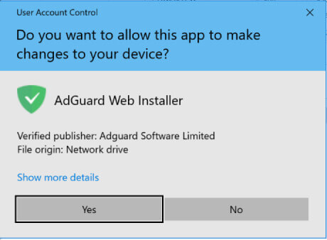 Click Yes in the User Account Control window to allow the app to make changes to your PC.