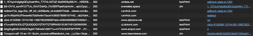 The extensions will immediately open that URL in the background. A chain of redirects follows this request: