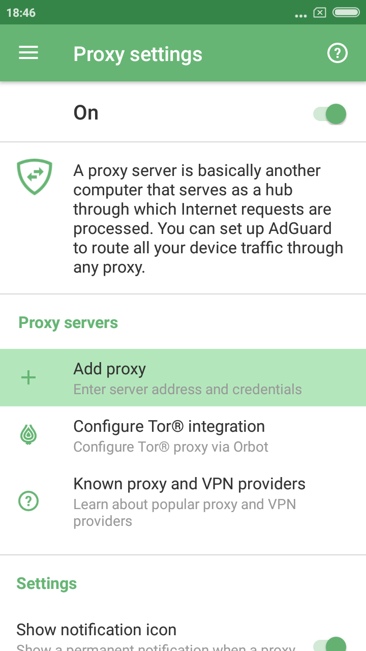 And one more thing about privacy. Using a proxy server is not just about bypassing access restriction to geolocked resources. It's about security! If you are using a proxy server, intruders won't know what websites you visit. And by the way, AdGuard allows configuring a proxy right in the app. You can also use AdGuard along with the anonymity network Tor (we have already integrated AdGuard with Tor for your convenience!).