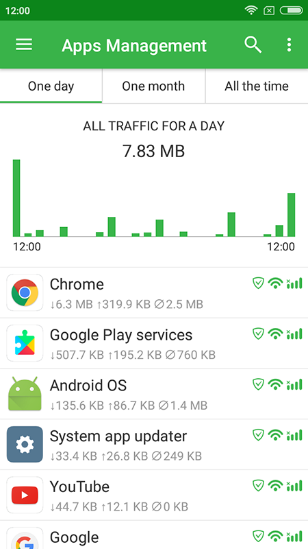 In the Apps Management special module, you can choose which apps should have WiFi or mobile data access. You can also change the rules of background Internet connection for your apps when the screen is locked. These settings can be applied to all installed apps or just to selected ones.