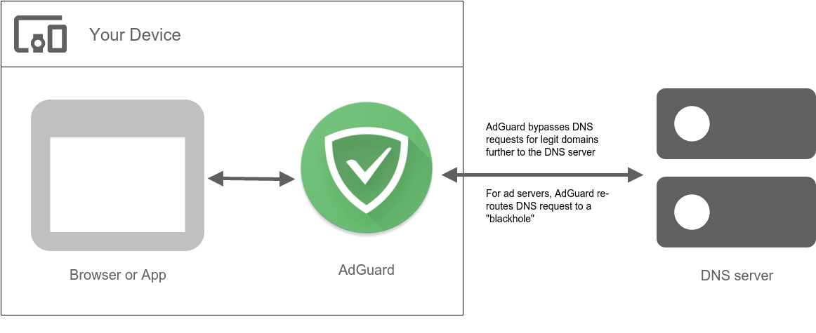 DNS filtering is one of the most effective ways to protect you from malicious websites, which consists in redirecting a request to the special server. If you have DNS filtering enabled on your device, all DNS requests will pass through AdGuard before reaching the DNS server.