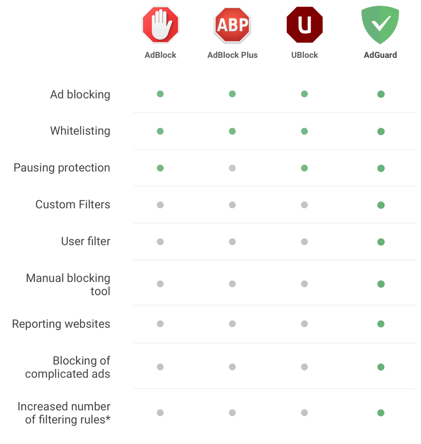 Also, we decided to check what has changed since AdGuard for Safari first release in November, 2018. Then we made a comparison table of popular ad blockers. Here is an updated version for April, 2020.