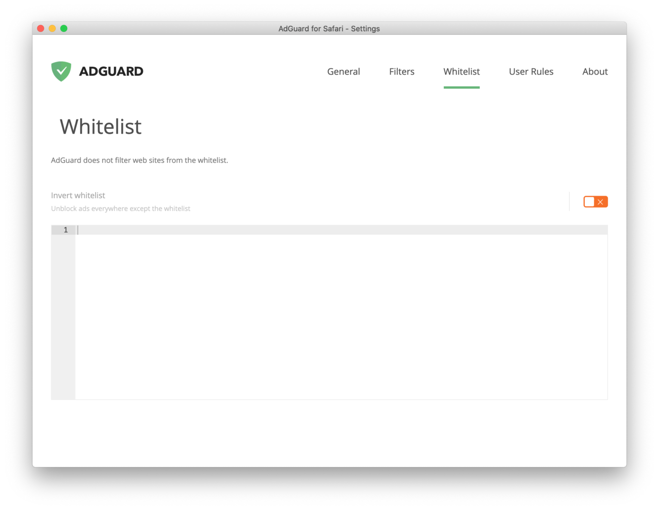 Note: Whitelist can be inverted — this means AdGuard will not block ads and tracking anywhere except for the websites you’ve put on this list.
