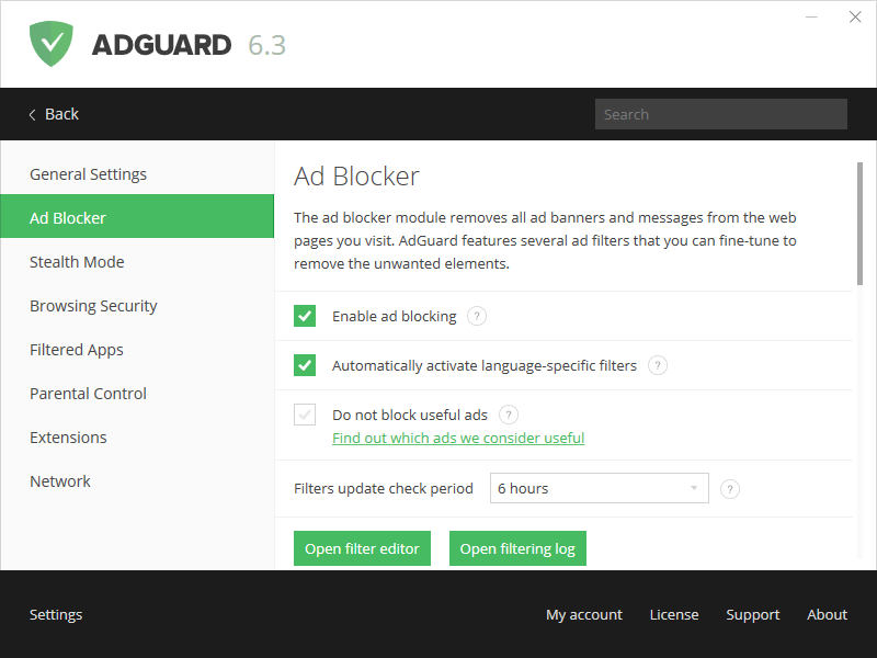 AdGuard's main job, without any doubt, is blocking ads, and responsible for this task is Ad Blocker module.