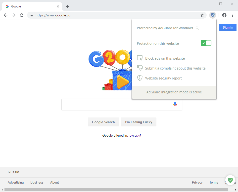 AdGuard Assistant works with all Microsoft Windows compatible browsers and is represented on all web pages by a little icon with a shield, except for few websites which are listed as exceptions (if there is a risk of incorrect content display).