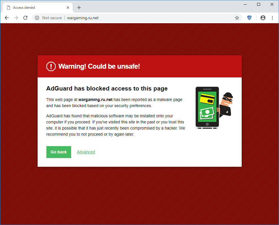 Regularly updated databases ensure that all malicious resources will be recognized and the app will warn you in time if you try to access a dangerous site. Note that your personal information is not transmitted anywhere, and AdGuard servers do not know what sites you are visiting because we don't check websites' URLs, but rather their hash prefixes (hash is a definite data structure, uniquely identifying each address added to the database).