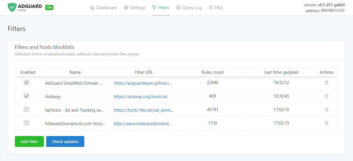 The short version: AdGuard Home is a network-wide ad-and-tracker blocking DNS server. Its purpose is to let you control your entire network and all your devices, and it does not require using a client-side program. At the same, AdGuard Home features a web interface to easily manage the filtering process.