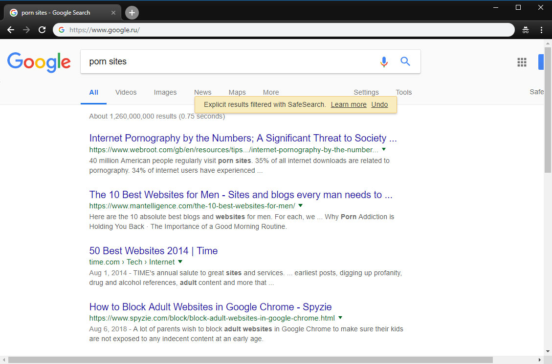 In the same vein, this option enforces "Safe search" mode in the most popular search engines (when enabled, it omits adult websites and pictures from being displayed in the search results)