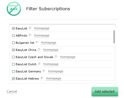 In addition, Adguard has became an even more comprehensive program. Now users can install any ad filters. What does it mean? In addition to the filters that are already installed in Adguard by default, you can add third-party ones, such as a list of filters that allow Adguard to block ads in different segments of the Internet – websites in different languages, in particular. All of this can be done directly in the program, simply by selecting a filter you want and clicking on the “Add selected” button.