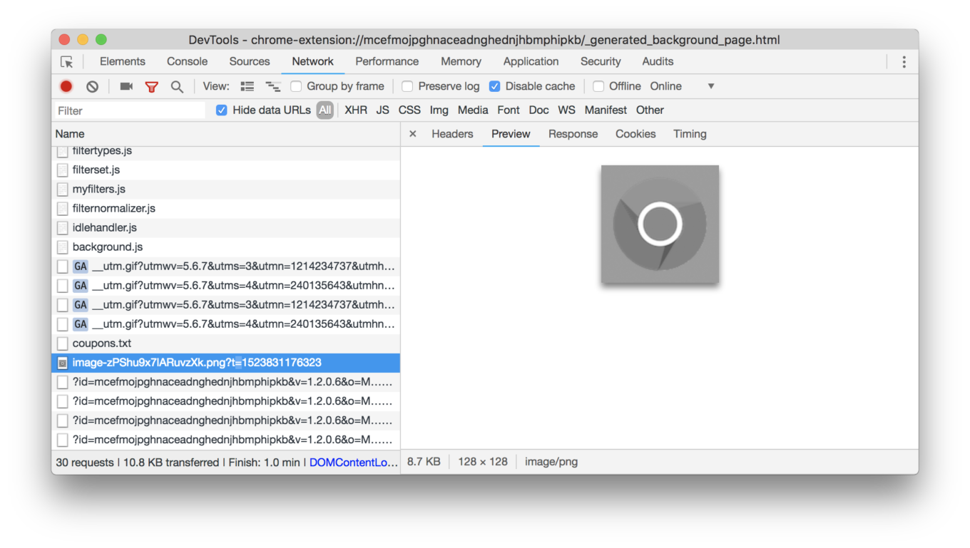 Now to that weird image. It appears that another script is hidden inside of it, and the extension was decoding and executing it: