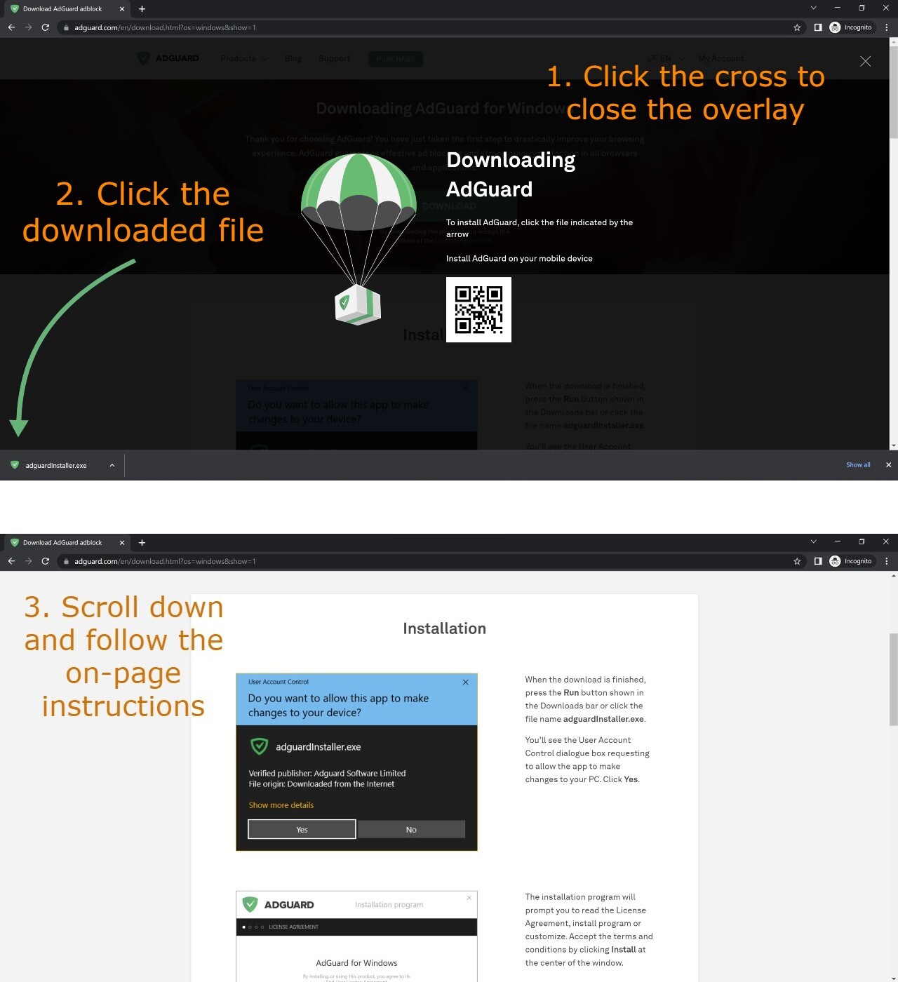 STEP 2: Install the AdGuard App (follow instructions on the download page)