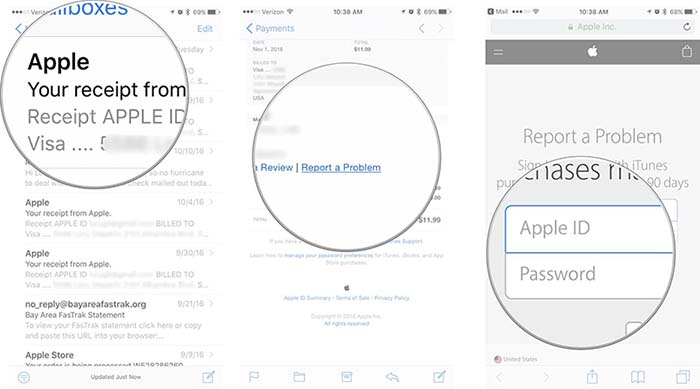 Sign in with your Apple ID and password at reportaproblem.apple.com. Tap “I’d like to...” under the question “What can we help you with?” and choose “Request a refund”. Select one of the reasons under “Tell us more”, select the item you want your money back for.